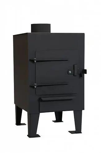 Печь отопительная «Сибирь-Полигон» представляет собой мобильную печь, предназначенную для обогрева мобильных и быстровозводимых объектов. Печь изготовлена из стали толщиной 3 мм и окрашена жаростойкой эмалью черного цвета. Основным топливом для данной модификации являются дрова. В ее конструкции предусмотрены опорные ножки с металлическими подкладками, обеспечивающими ее устойчивость в процессе эксплуатации. Зольный ящик, расположенный в нижней части выполняет функции регулировки подачи воздуха. С его помощью поддерживается необходимый режим горения топлива. Топочная дверца выполнена из металла как и колосник, который расположен внутри топочной камеры.